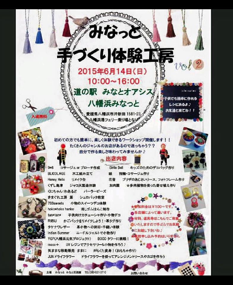 6月14日日曜 みなっと 手づくり体験工房に出店、店舗はお休みです。