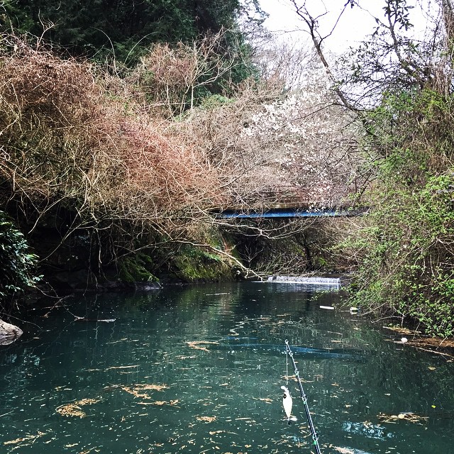 画像は赤橋の奥の奥の流れ込み、いつもは水位がなかったり木が繁ってたりしてなかなか入れないレアポイント。